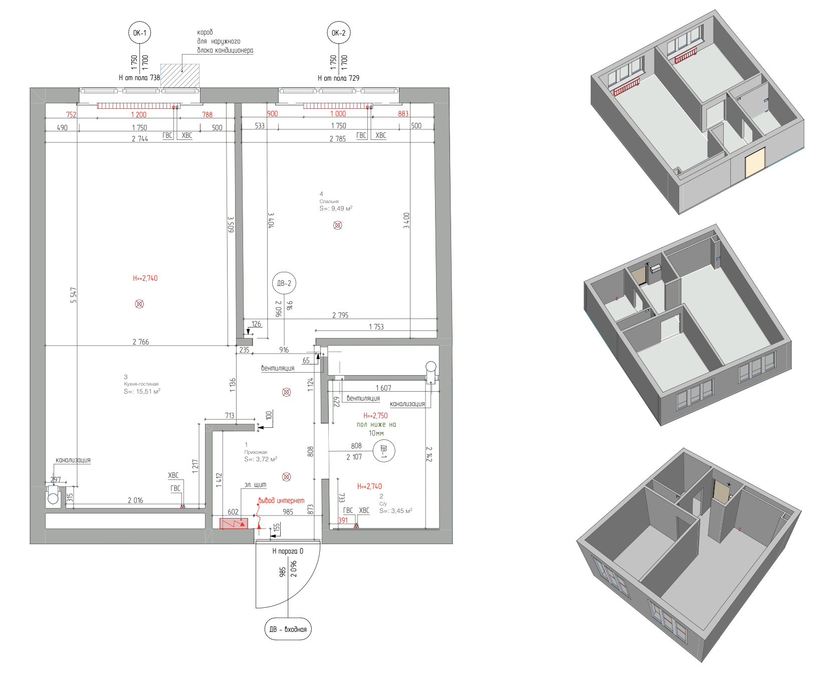 2. Развёртка стен всех помещений, включая мебельные конструкции;